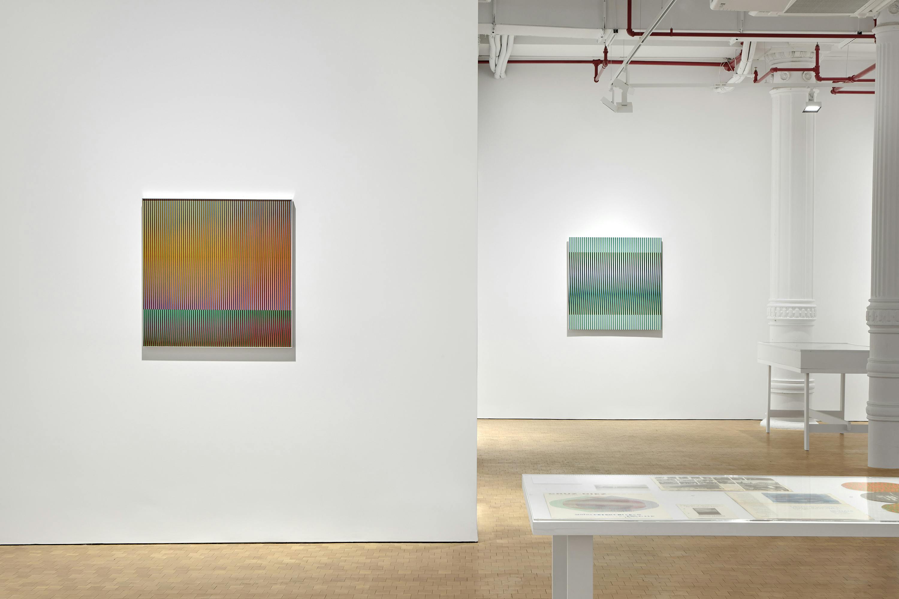 This exhibition brings together some of his earliest paintings, from the Signos vegetales series (Vegetal Signs, 1955-56), with select works from his landmark Physichromie, Induction chromatique, Chromointerférence, and Chromoscope series. Featuring abstractions that appear to change as the viewer moves in space, these works serve as physical manifestations of Cruz-Diez's research into color as an autonomous and ever-evolving event. They are accompanied by portfolios and archival materials, including documents and early publications designed and illustrated by the artist, providing an insightful look into his exploration of color and the trajectory of his formal vocabulary.